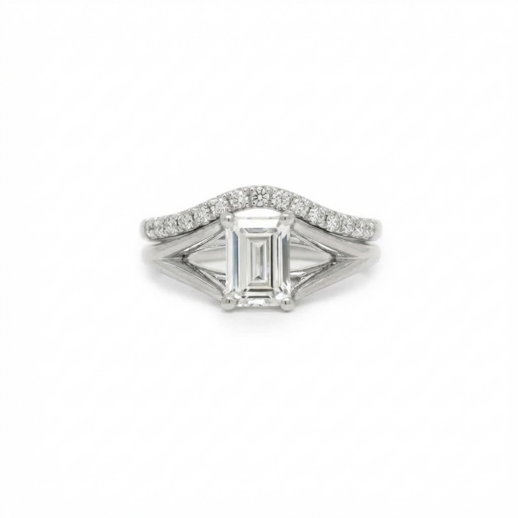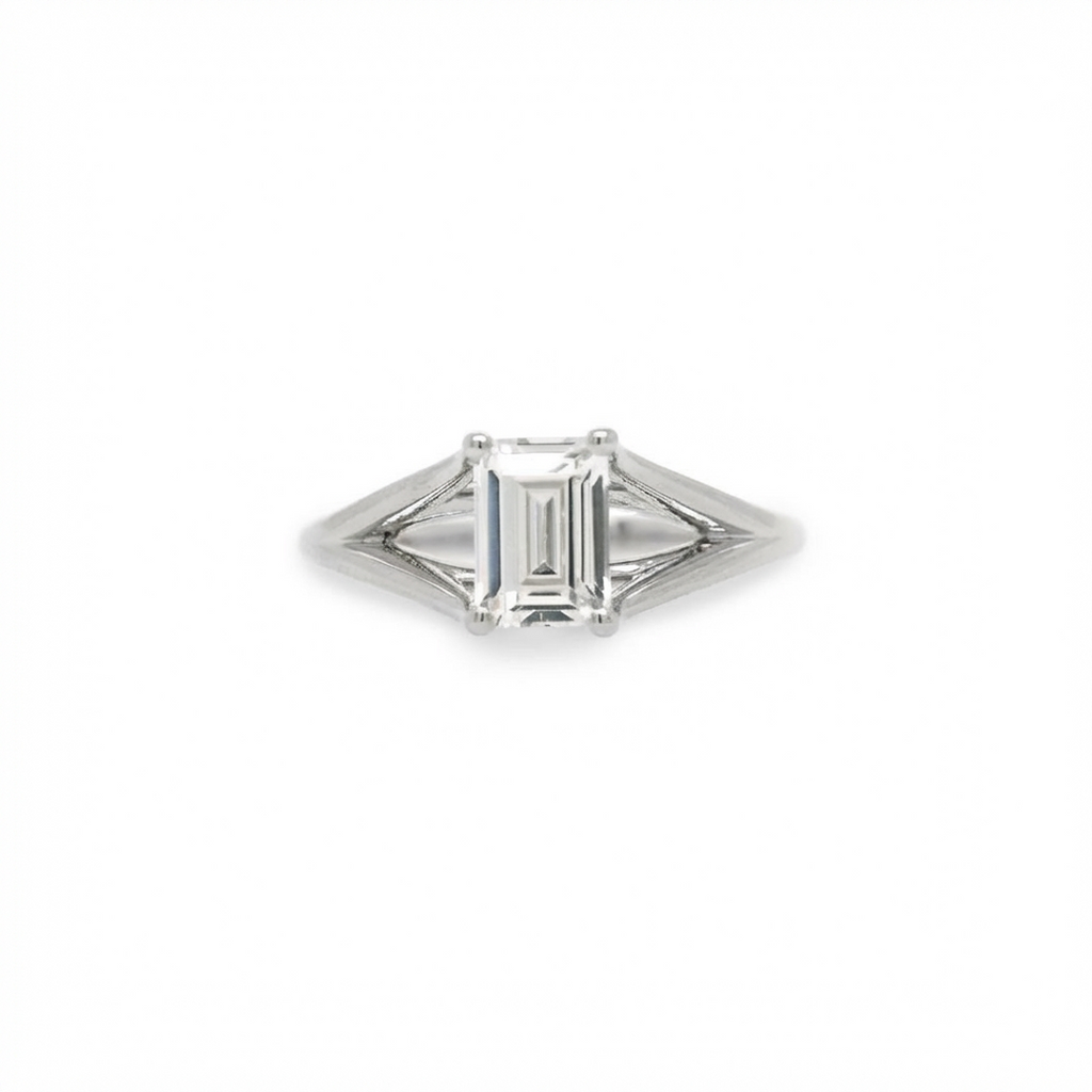 The Charlotte Ring captures the quiet poetry of love in its purest form. Designed with an open, airy setting, its delicate prongs gently lift the center stone toward the light, allowing it to shimmer from every angle. The design feels effortlessly graceful—light, elegant, and timeless—like a promise carried on a whisper.✨